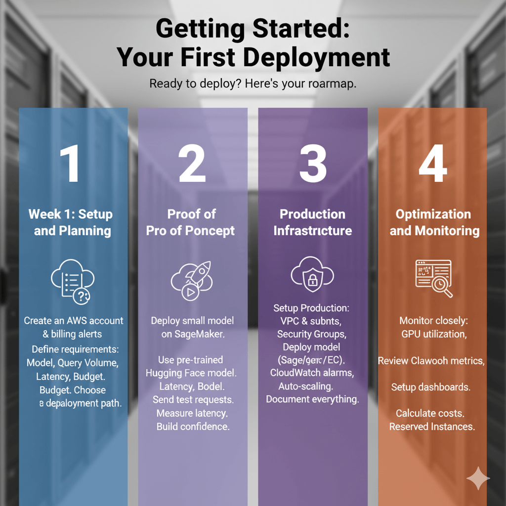 Start with SageMaker for managed simplicity. Scale to EC2 when you need direct hardware access. Monitor costs continuously and right-size resources based on actual usage patterns.