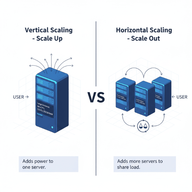 Both approaches increase capacity, but they do so differently. Vertical scaling is often simpler to implement but has natural limits. Horizontal scaling can grow further but requires application architecture to support distribution.