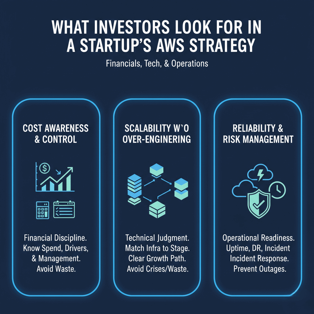 Your AWS infrastructure tells investors more about your startup than your pitch deck. How you manage cloud costs, architect for scale, and handle reliability reveals your operational maturity and decision-making discipline.