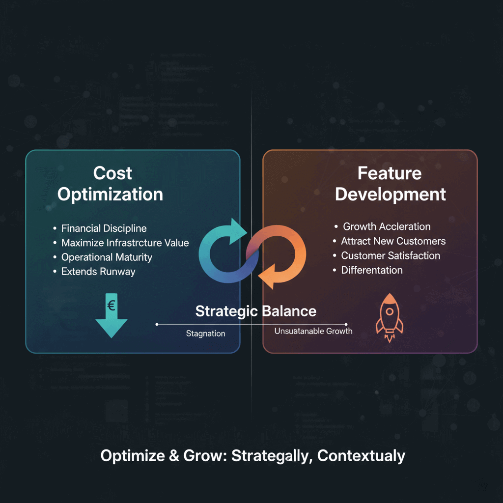 Every startup CEO faces the same resource allocation question: should engineering time go toward building new features or optimizing existing costs? Both paths have merit. Both have risks.