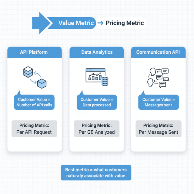 The optimal metric aligns with how customers experience value. A data analytics platform might charge per query executed or gigabyte analyzed. A communication API charges per message sent or minute consumed. Machine learning platforms bill for training hours and inference requests. Avoid metrics that confuse customers or create unpredictable billing.