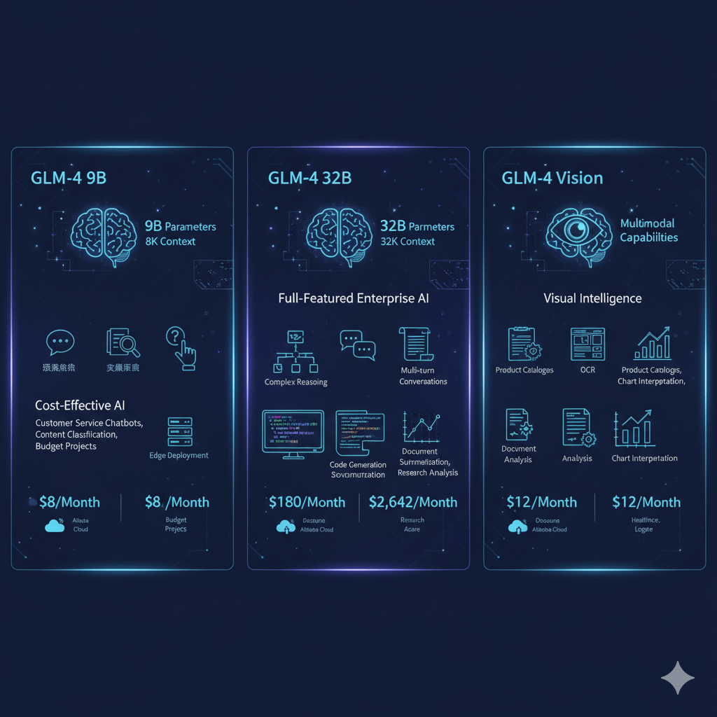 Alibaba Cloud pricing: GLM-4 9B costs $8 monthly on ecs.gn7-c8g1.2xlarge instances, while GLM-4 32B requires $180 monthly for ecs.gn7i-c32g1.8xlarge instances.
