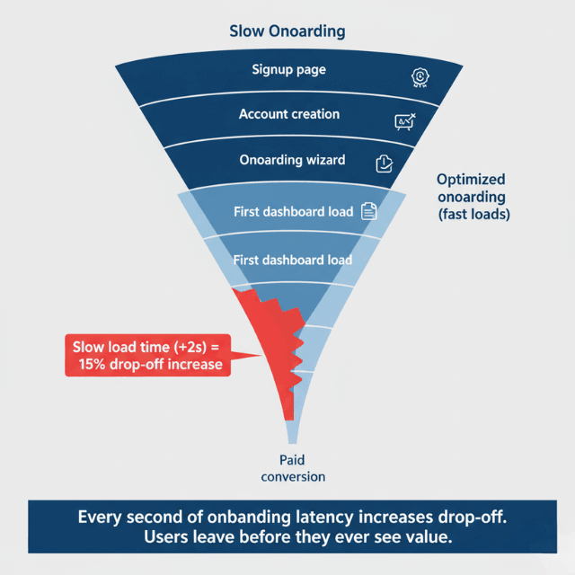 - Onboarding performance shapes first impressions: Slow free trials create lasting doubt. Fast onboarding increases trial conversion.