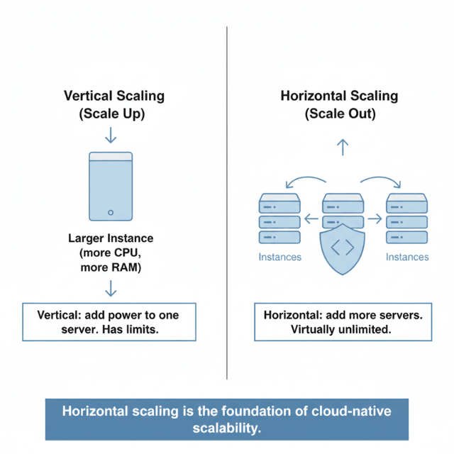 - Scalability requires horizontal thinking. Stateless design, read replicas, caching, and asynchronous processing enable adding servers rather than upgrading them. Plan for scale from day one retrofitting is expensive.