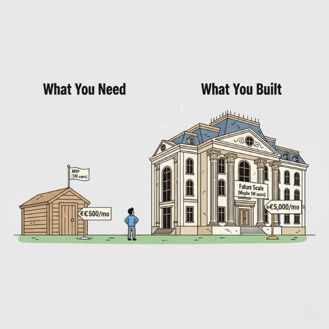 Designing for scale you do not have means paying for capacity you do not use. Running a multi-region setup with auto-scaling groups for an application serving 100 daily active users wastes thousands monthly. Start with the simplest architecture that serves your current users, then evolve as traffic justifies the investment.